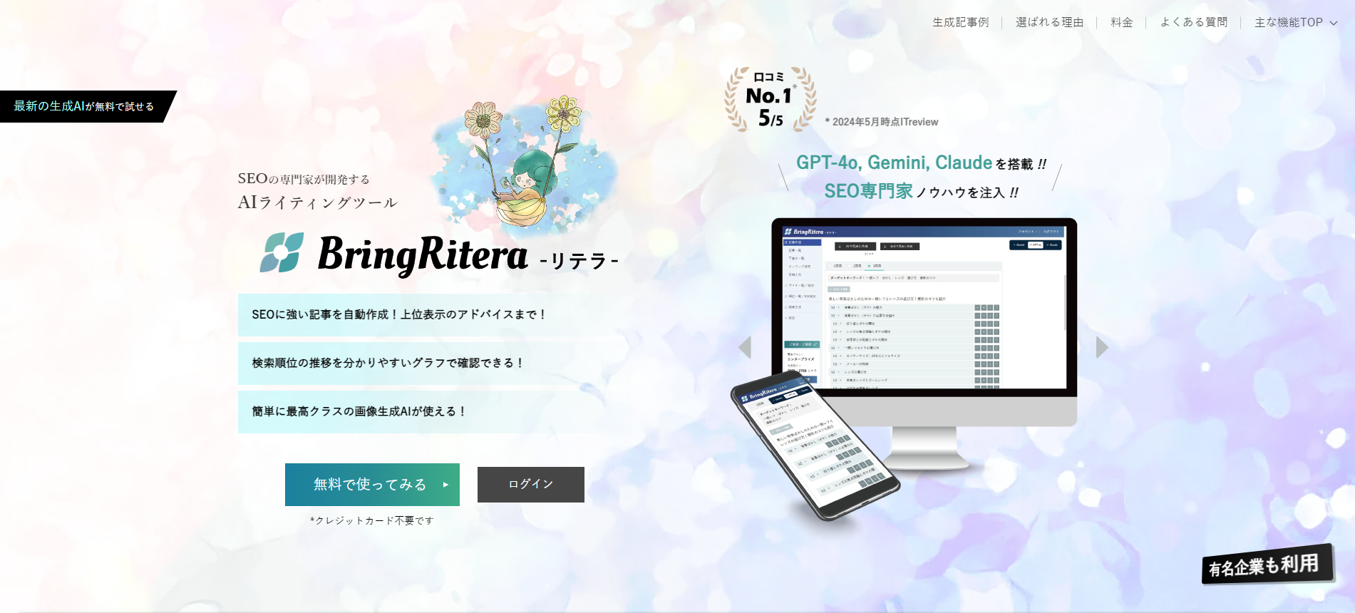 こんにちは!今日は「Bring Retera」というAIライティングツールをご紹介します。このツールはSEOの専門家が開発したもので、SEOに強い記事を簡単に作成できるんです。特に、ブログやWebサイトの運営をしているクリエイターさんにはとても便利なツールです。