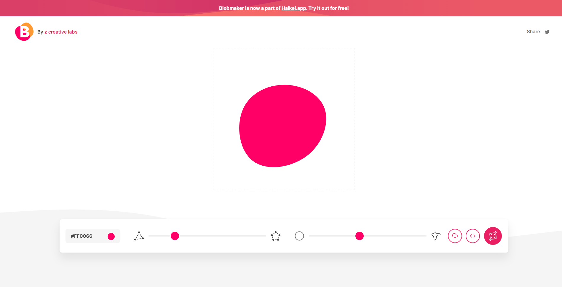 「Blobmaker」は、そんなBOLBデザインのSVG画像を簡単に生成できるツールです。このツールを使えば、複雑なデザインソフトを使わなくても、シンプルで美しいBOLBデザインの画像を瞬時に作成できます。操作はとても簡単で、必要なパラメータを設定するだけで、独自のSVG画像が生成されます。
