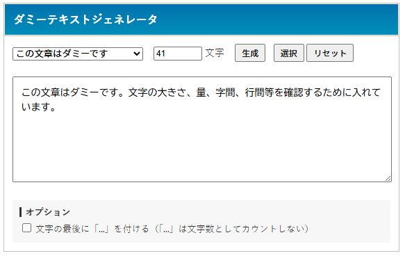 自由な長さのダミーテキストを簡単に生成できる便利ツールです!